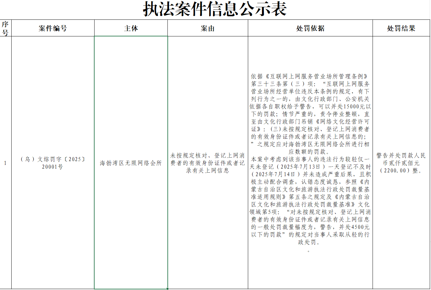 | 索??引??號 | 11150300011556741W/2025-04067 | 發文字號 | (烏)文綜罰字〔2025〕20001號 | ||||||