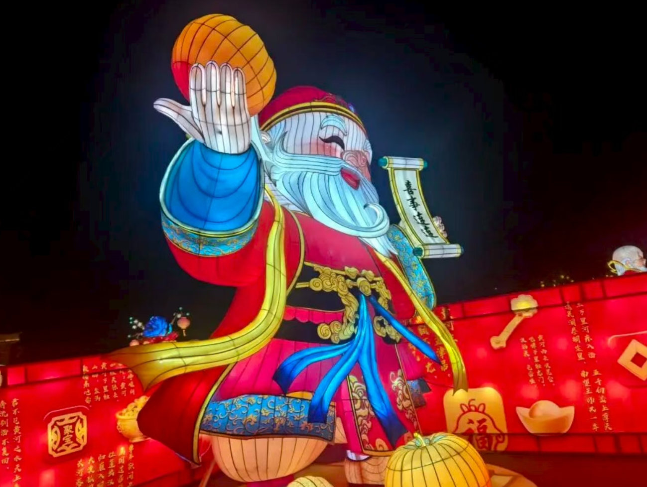 夜風中,紅墻燈影流動